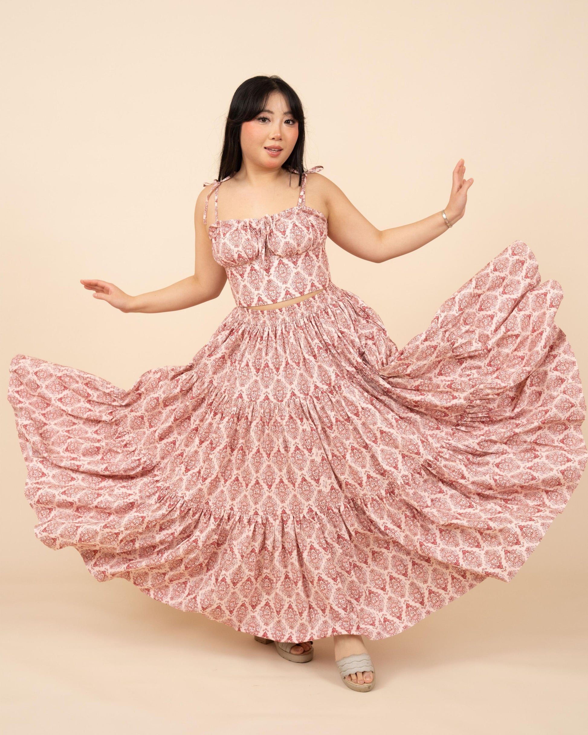 A super voluminous and breathable skirt in our newest pattern, Damask Mushroom. The skirt has pockets and an elastic waist.