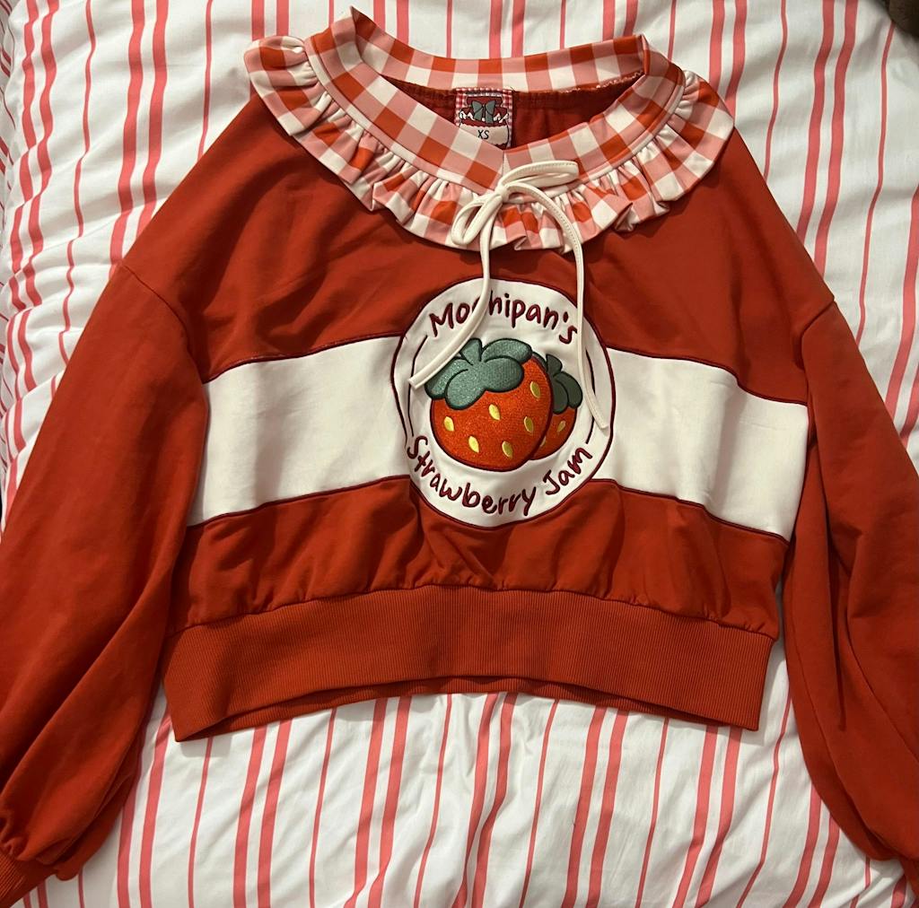A cute strawberry jam themed oversized sweater.