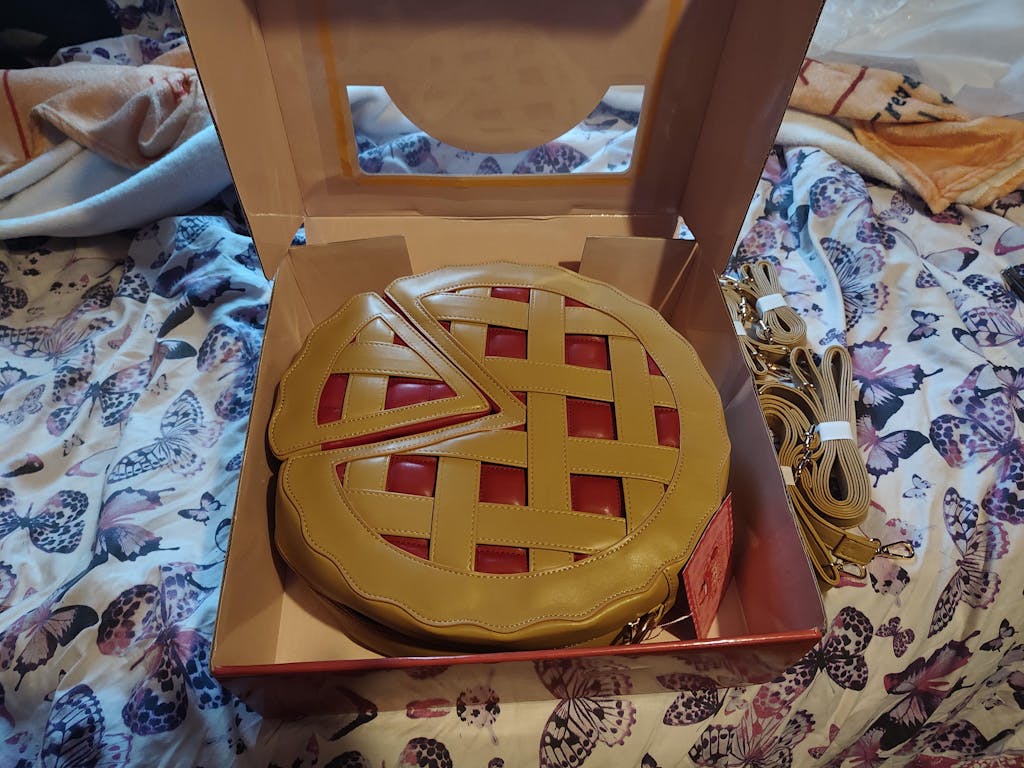 A JUMBO sized Pie Backpack with a detachable handbag pie “slice”.