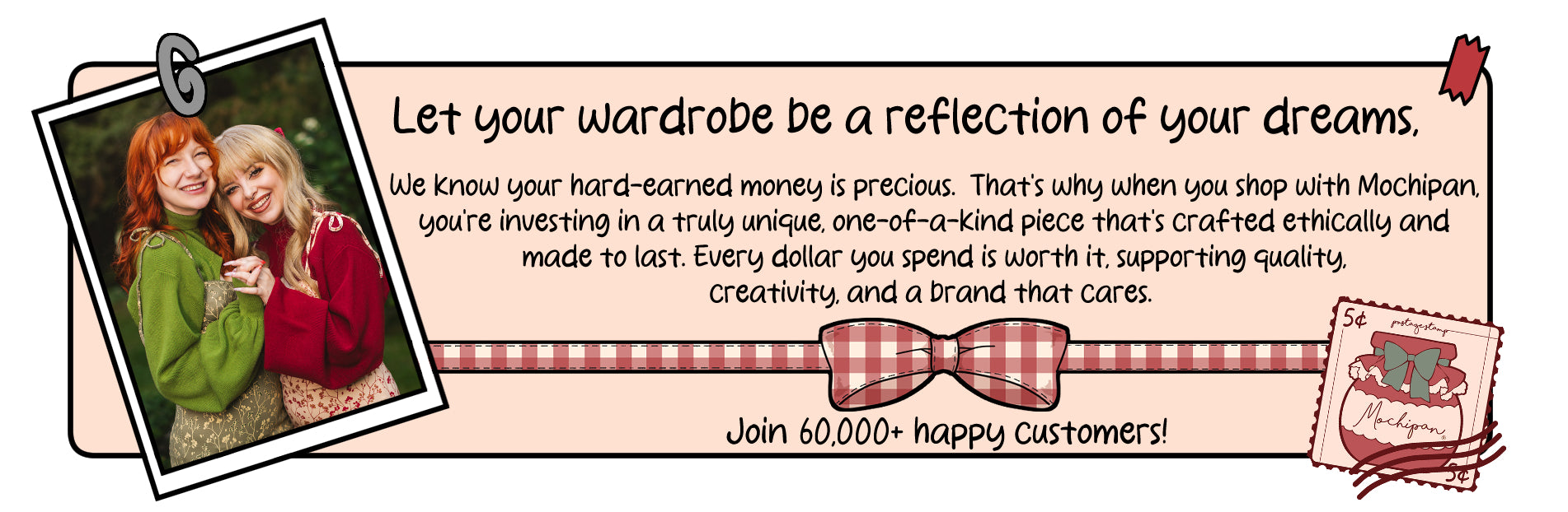 We care about the Earth. Mochipan implements sustainable practices wherever possible, such as eco-friendly fabrics and compostable packaging.