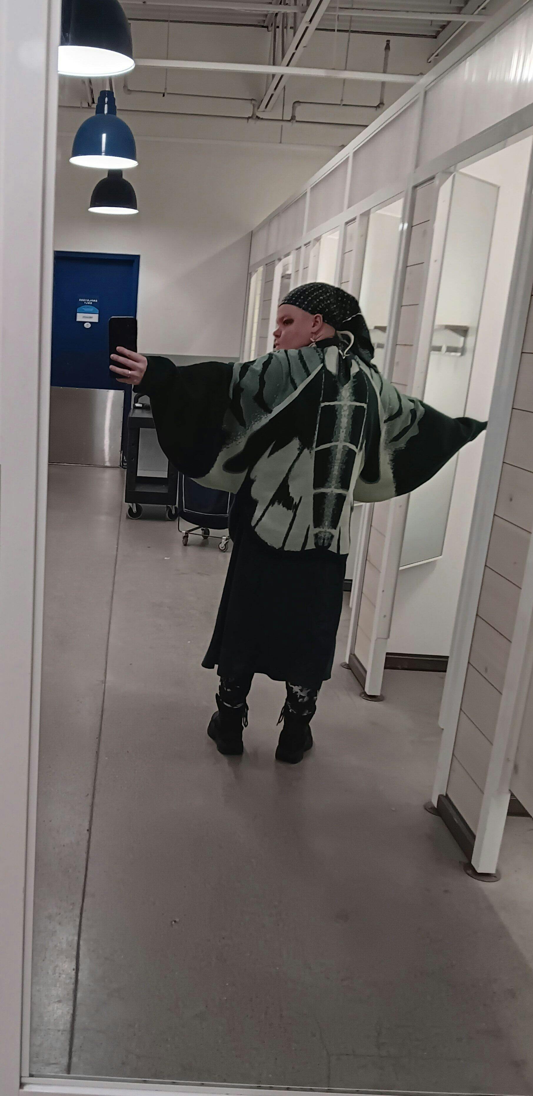 Rae has a 45in bust, 32in hips, and 47in hips. Her preferred size is L-XL